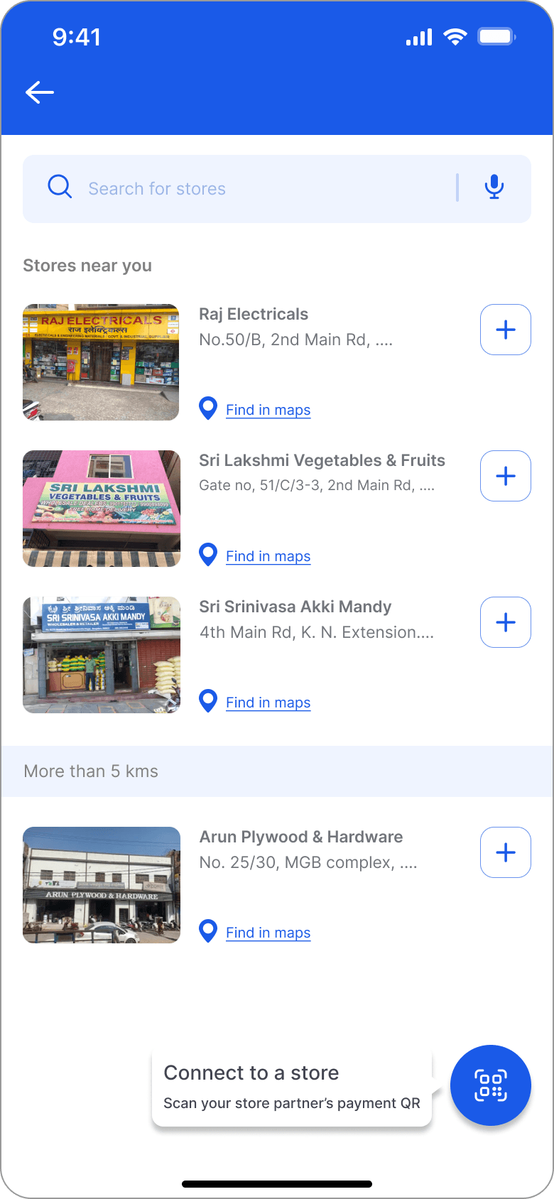 QR code scanner for buyers to scan and seamlessly connect with their store partner using the seller’s existing UPI payment QR.