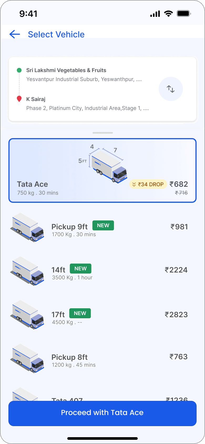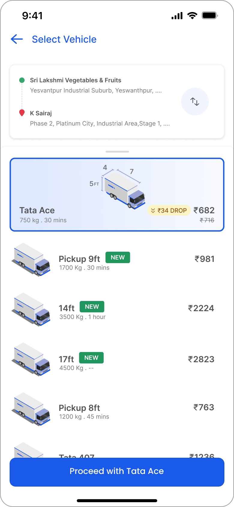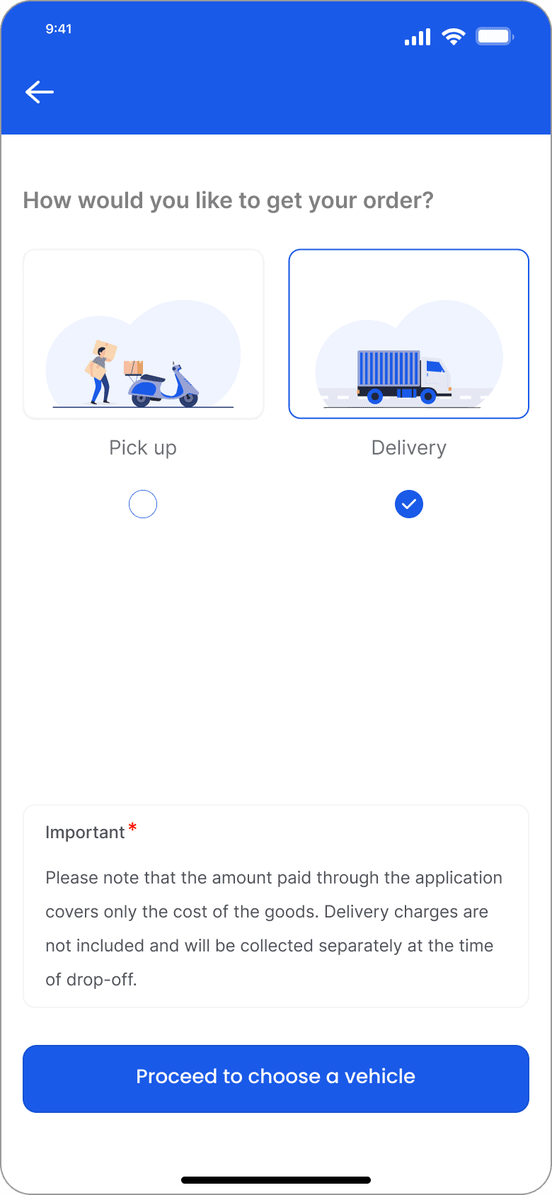 On selecting the delivery option, Asaan redirects the user to porter app's (an already existing goods transportation vehicle booking app) interface for vehicle booking