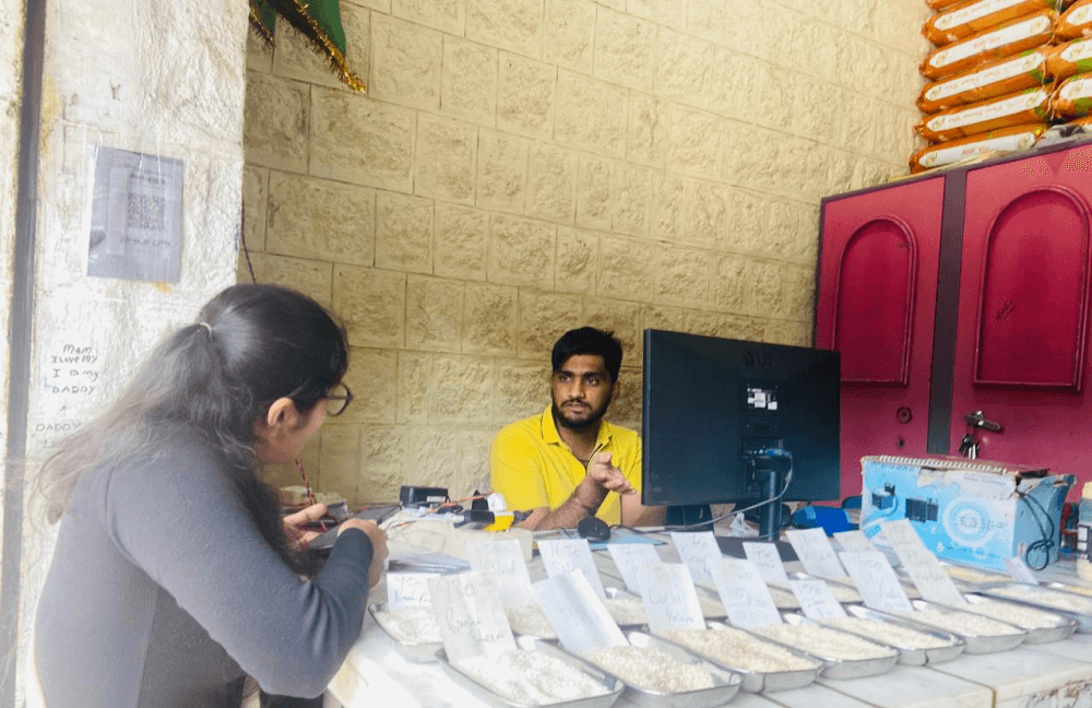 After conducting secondary research, including system study, stakeholder mapping, and diagram mapping, I proceeded with primary research at the Yeswanthpur Agricultural Produce Market Committee (APMC) yard. I interviewed and observed wholesalers and retailers in the rice and grain trade, gathering some key insights.